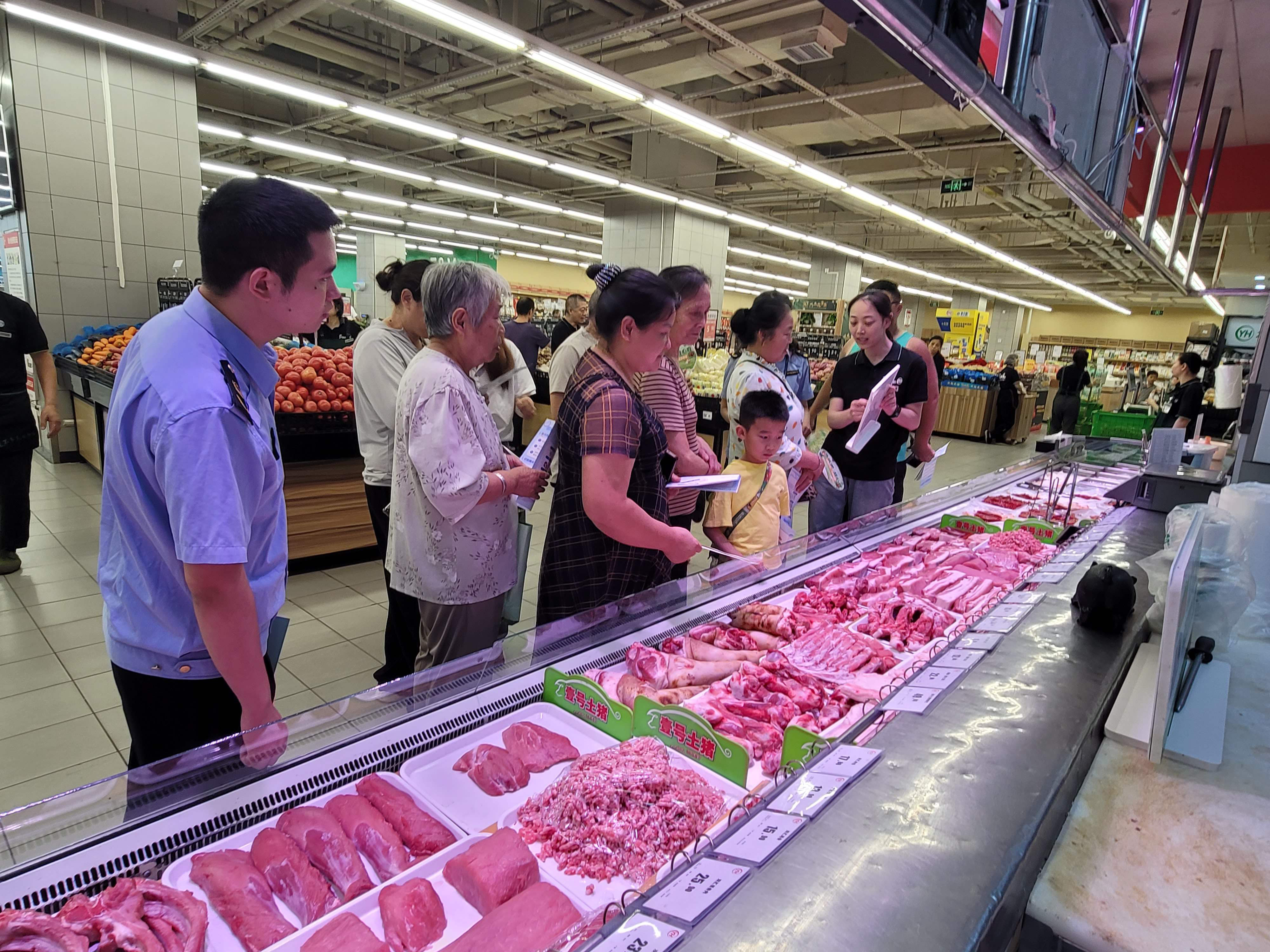 还展现了保障食物平安的做法,将“正在商超,工做人员热情向过往群众发放印有宣传的解暑扇、食物平安学问的宣传科普材料,